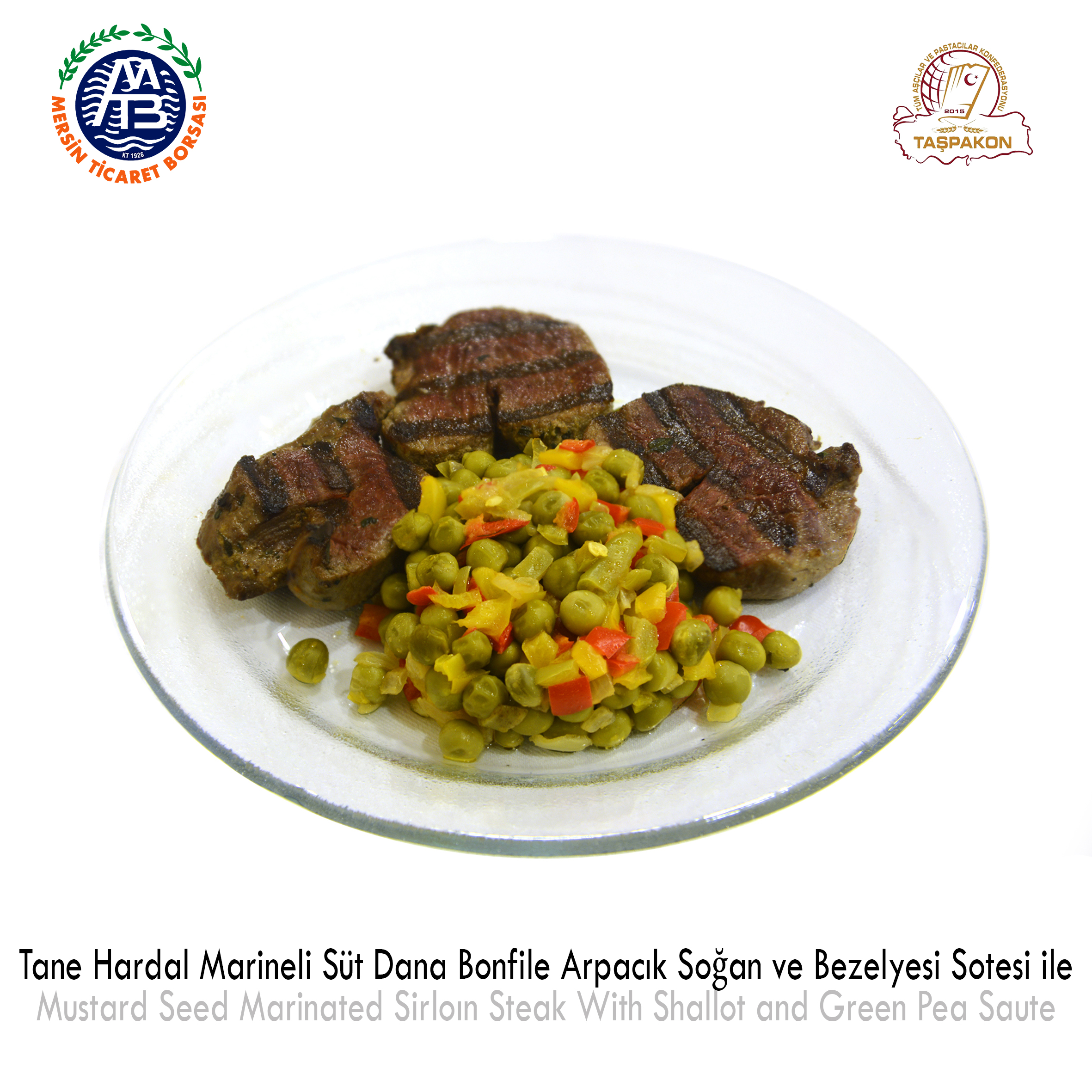 Mustard Seed Marinated Sirloin Steak with Shallot and Green Pea Saute