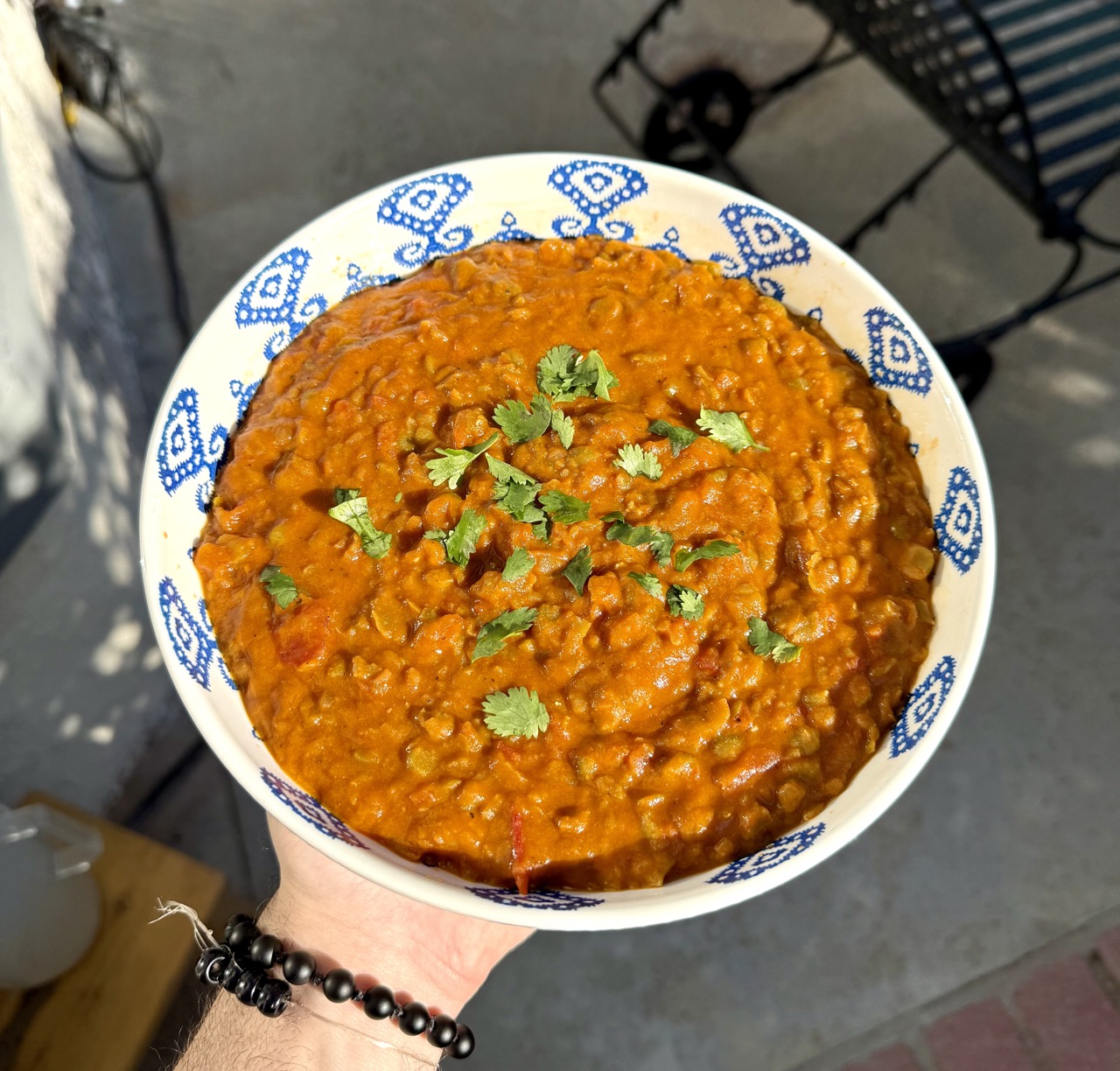 • Serve soup garnished with fresh cilantro. Serve on top of rice, or simply scoop it up with garlic naan. Enjoy!