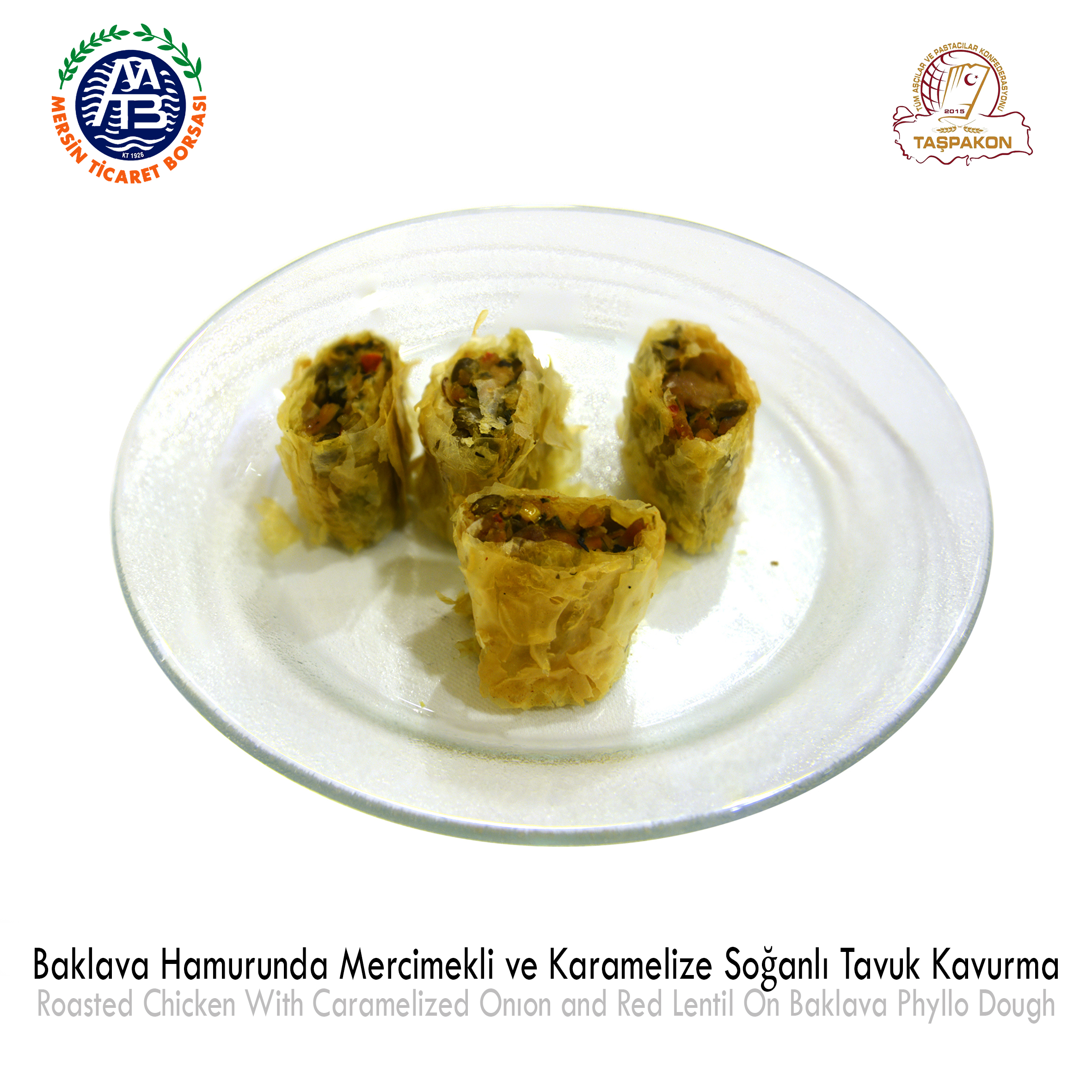 Roasted Chicken with Caramelized Onion and Red Lentil on Baklava Phyllo Dough