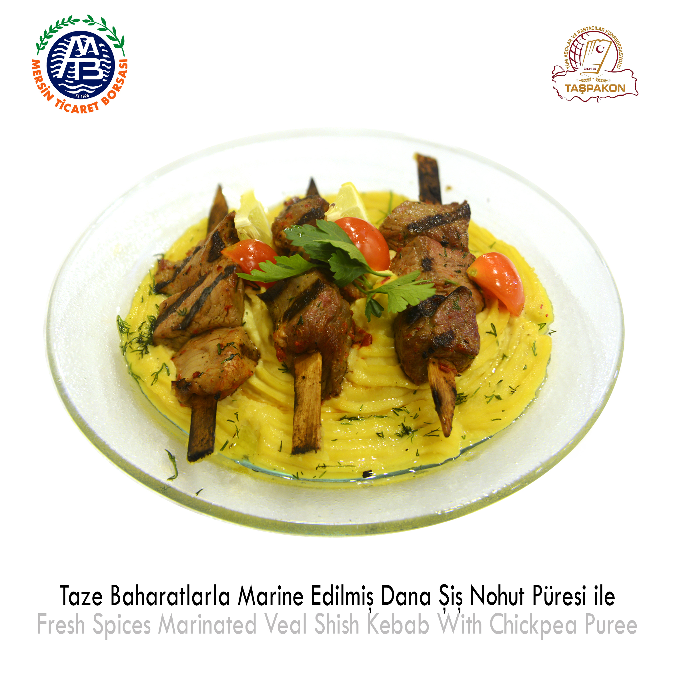 Fresh Spices Marinated Veal Shish Kebab with Chickpea Puree